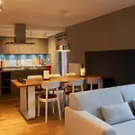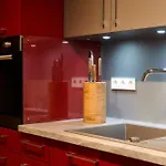 This apartment provides a fully furnished kitchen with all necessary utensils to prepare meals.
